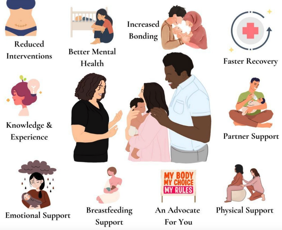 💡 Did You Know? Having someone focused only on you during labor reduces feelings of being “lost in the system” and helps families feel more valued and respected.