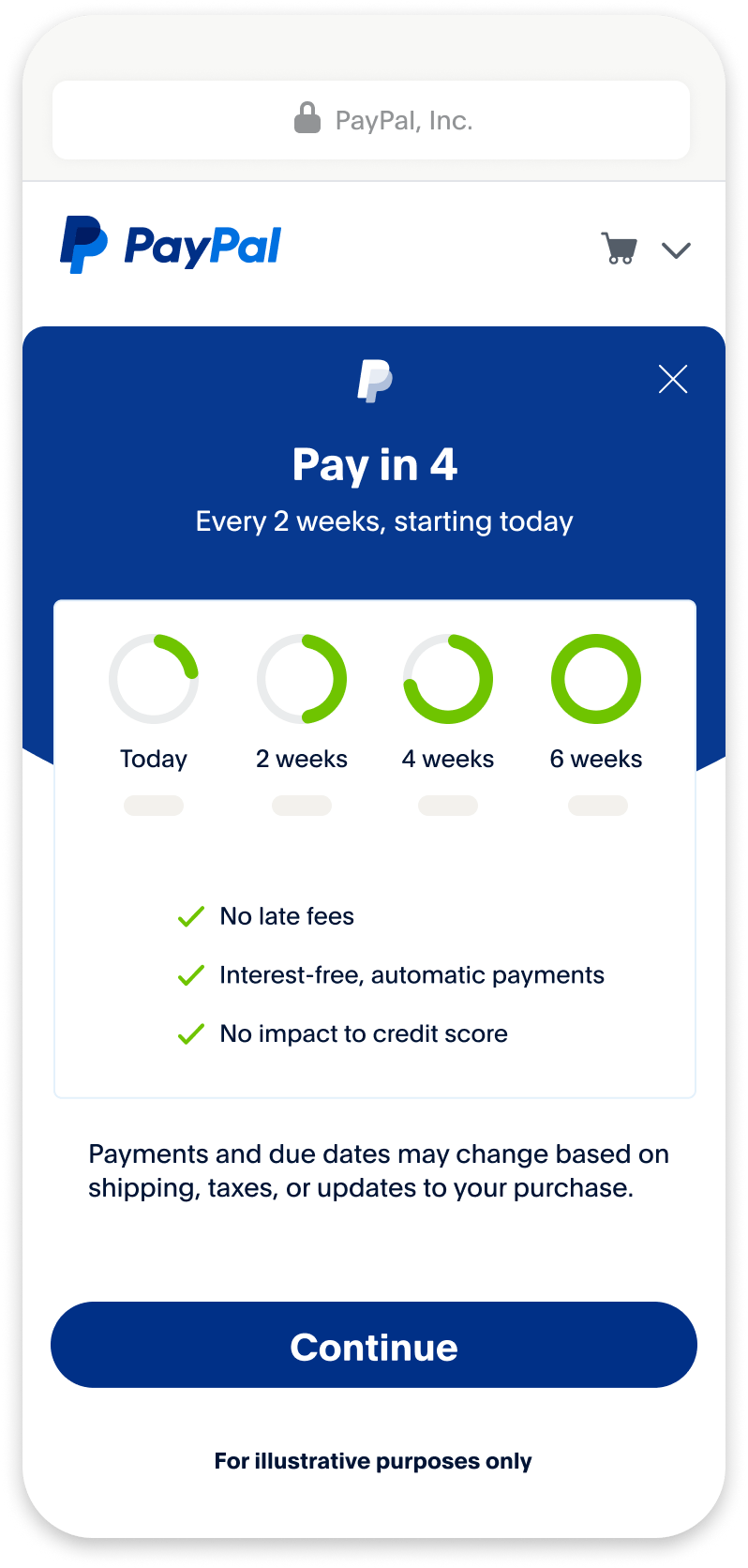 Inside PayPal, select Pay in 4 if it’s offered to your account